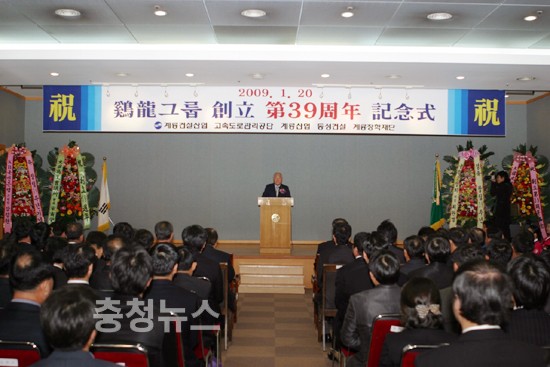 계룡그룹은 20일 상오 10시 계룡사옥 12층 대강당에서 이인구 명예회장과 이시구 회장, 각 계열사 사장단 및 임직원, 협력업체 관계자 등 400여명이 참석한 가운데 창립 39주년 기념식을 갖고 지난해 실적과 올해 목표 및 경영전략을 발표했다.