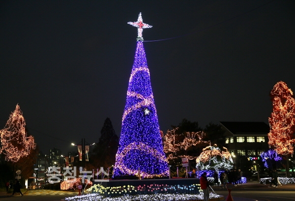 폭 4m, 높이 12m의 성탄트리에는 다양한 별모양 장식, 눈송이, 십자가, 약 1000여 개의 전구 등이 설치됐다. 트리주변에 은은한 꽃 LED조명까지 더해져 환상적인 분위기를 연출했다. 연말까지 형형색색의 불빛이 어두운 밤하늘을 환하게 비출 예정이다.
