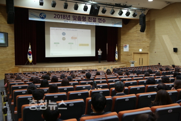 세종시교육청(교육감 최교진)은 21일 세종시교육청 대강당에서 관내 유·초·중·고 교(원)감, 행정실장 및 교육청, 직속기관 직원 등 총 320여 명을 대상으로 고객과의 소통을 위한 맞춤형 친절 연수를 실시했다.