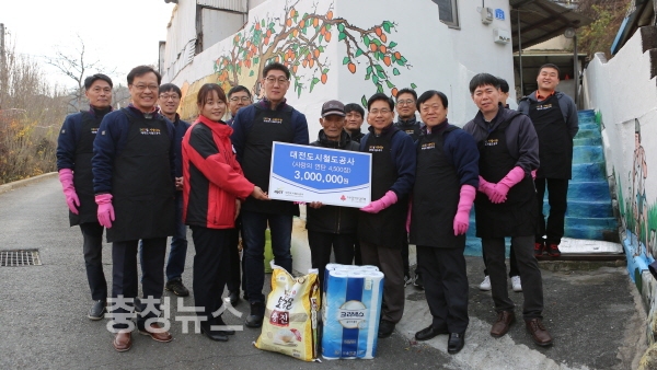 대전도시철도 노사는 21일 중구 산성동․사정동 일원 저소득층 15가구를 찾아 사랑의 연탄 5천여장을 전달하는 봉사활동을 펼쳤다.