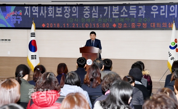 중구 지역사회보장협의체 핵심위원과 지역 사회복지시설․기관․단체 관계자와 주민 등 200여명은 정세은 충남대학교 경제학과 교수의 ‘지역사회보장의 중심! 기본소득과 우리의 삶’강의를 경청했다.