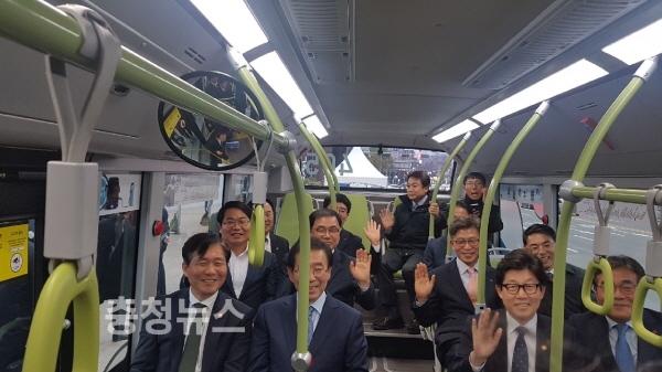 업무협약을 마친 오세현 아산시장은 수소버스 브리핑 및 수소차 미세먼지정화 시연회 참관과 서울광장에서 수소버스 시승행사도 가졌다.