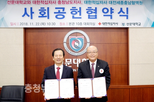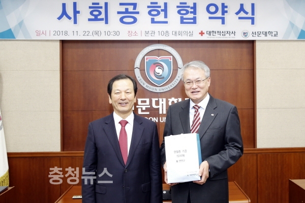선문대학교(총장 황선조)가 22일 대한적십자사 충남지사(지사회장 유창기)와 사회봉사인증을 위한 사회공헌협약을 체결했다.