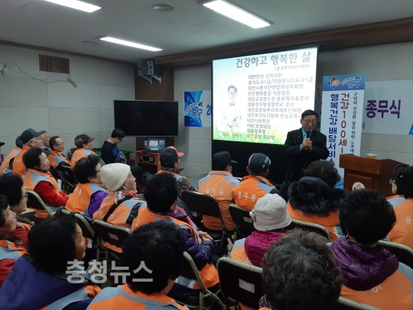 종무식 후에는 효지도사협회 김영기 인성교수가‘건강하고 행복한 노년의 삶’의 주제로 일상생활 속에서 쉽게 실천할 수 있는 건강유지법을 설명해 참여자의 큰 호응을 얻었다.