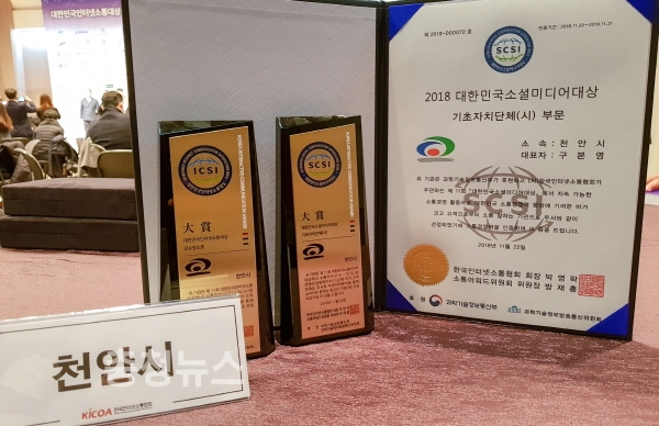 충남 천안시가 전국에서 글로벌소통과 기초자치단체 중 소셜미디어를 가장 잘 활용했다고 인정받았다.