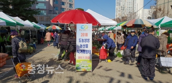 농협 충남지역본부(본부장 조소행)는 23일 대전시 대사동 소재 舊) 충남지역본부 사옥 후정주차장에서 “2018 도농상생 농산물 직거래장터”를 개최했다.