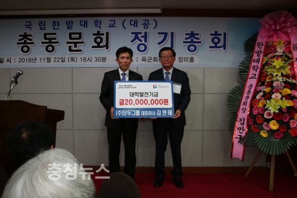 한편, 이번 총회에서는 제19대 재경총동문회장으로 양영식 건축과 동문((주)창해개발 대표)이 새로 선임되어, 향후 2년간 한밭대 재경총동문회를 이끌게 되었으며, 특히 재경동문의 각별한 후배사랑을 보여주는 행사가 있어 주목을 받았다.