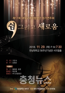 대덕구(구청장 박정현)는 오는 29일 한남대 56주년기념관 서의필홀에서 ‘제17회 대덕구여성합창단 정기연주회’를 개최한다.
