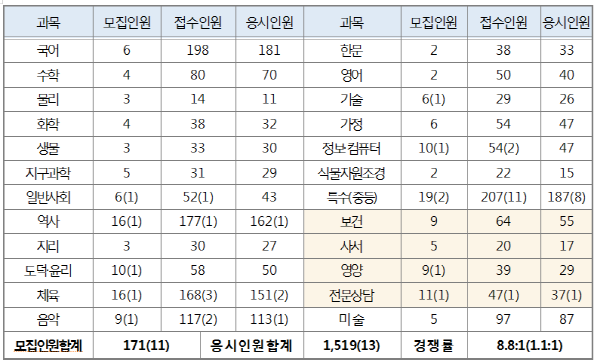 ▣ 공립 응시현황 : 24개 과목 / 1532명