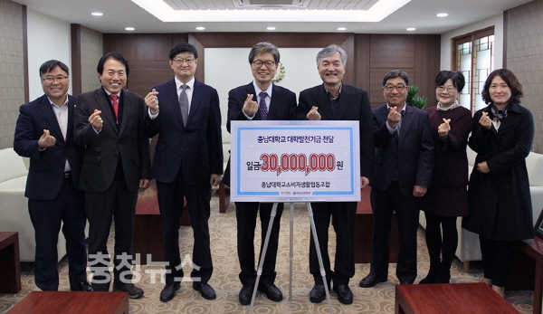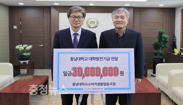 충남대 구성원들이 조합원으로 활동하고 있는 소비자생활협동조합이 도서관 발전기금을 기부했다.