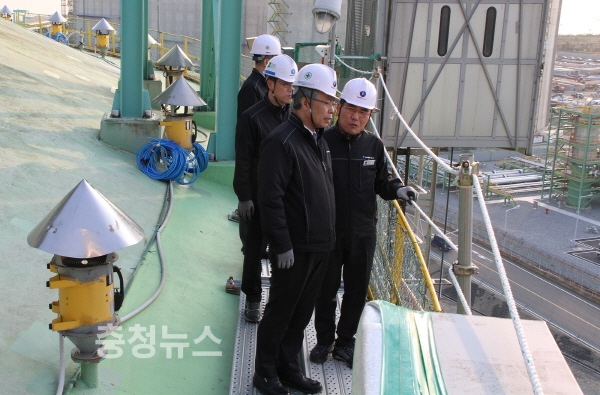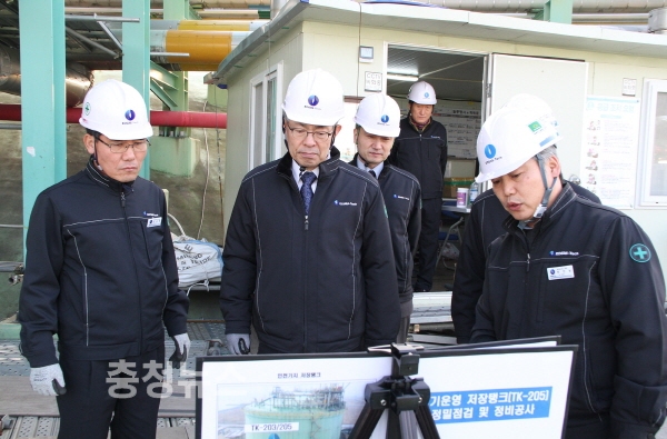 H2/HCNG 복합충전 설비 점검을 후에는 LNG저장탱크 보수공사 현장을 찾아 보수공사 진행상황과 현장안전관리 현황 등에 대해 점검했다. 특히 화재 등 안전사고에 취약한 동절기 기간 중 무엇보다 실질적 점검을 통해 안전을 확보 후 작업에 임할 것을 당부했다.