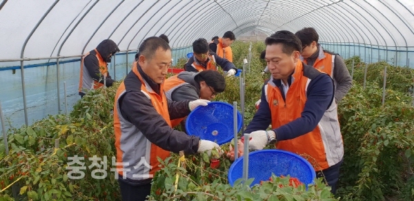 이번 농촌일손돕기에는 충남농협 조소행 본부장을 비롯하여 류병관 농협노조 충남세종지역위원장과 중앙회, 경제지주, 은행, 보험, 농신보, 자산관리 임직원 및 청양군지부(지부장 윤일근), 화성농협(조합장 김종욱) 직원 등 50여명이 참여하여 구기자 수확에 구슬땀을 흘렸다.
