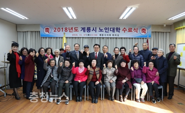 충남 계룡시는 27일 2018년 대한노인회계룡시지회 부설 노인대학(대학장 김낙기) 수료식을 가졌다.