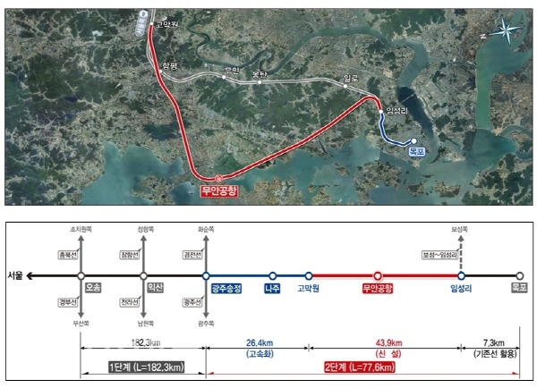 고막원∼임성리 구간(43.9km)은 총 7개 공구로 나뉘어 새롭게 건설되며, 나주 고막원역에서 신설 무안공항역을 거쳐 목포 임성리역을 연결하게 된다.