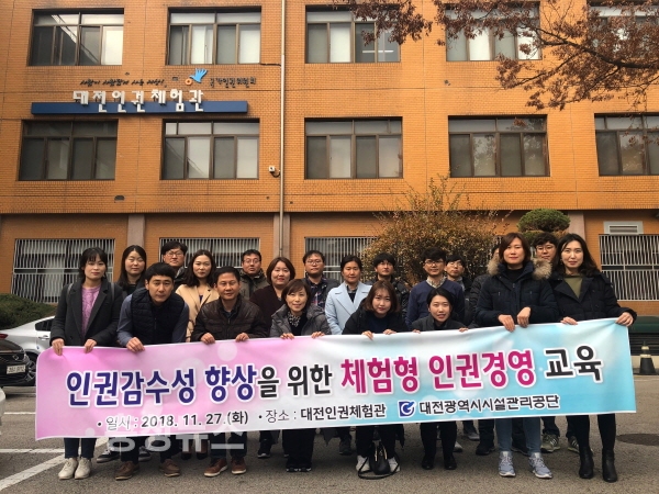 대전시설관리공단(이사장 설동승)은 27일 직원 30여명을 대상으로 대전평생교육진흥원(옛 충남도청)에 위치한 대전인권체험관에서 인권교육을 실시했다.