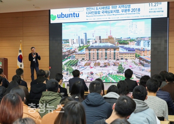 이날 심포지엄은 일본, 홍콩 등의 권위 있는 해외 도시재생 전문가의 발표와 천안시 도시재생과 이경렬 팀장, 제주창조경제혁신센터의 전정환 센터장의 지역혁신을 위한 도시재생이 발표 되었고 지역상생을 위한 도시재생을 상명대 디자인대학 교수 외 재학생들의 발표로 구성됐다.