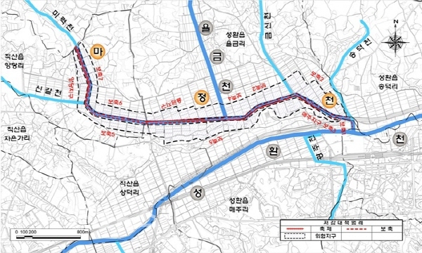 마정지구에는 사업비 75억원이 지원돼 축제 4.3km, 교량 11개소를 재가설 하는 등 지방하천(마정천) 정비를 통한 저지대 상습침수 피해를 입고 있는 지역주민의 생명과 재산을 보호한다는 방침이다.