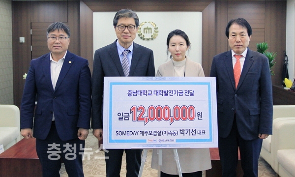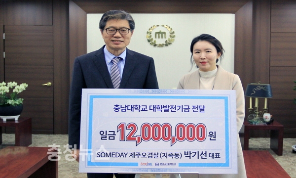 유성구 지족동에 위치한 삼겹살 전문점인 ‘SOMEDAY 제주오겹살’이 충남대에 도서관 발전기금을 기부했다.