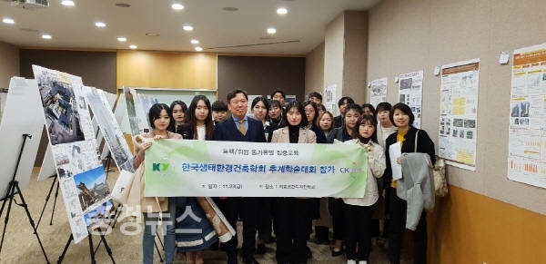 건양대학교(총장 이원묵) 의료공간디자인학과 학생들이 지난 23일 한국과학기술회관에서 개최된 한국생태환경건축학회 추계학술발표대회에서 우수논문발표상을 수상했다.
