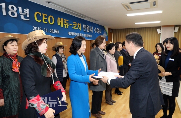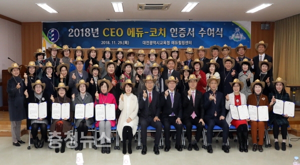 대전시교육청(교육감 설동호)은 29일, 에듀힐링센터에서 에듀-코칭 CEO 전문가과정 수료식 및 에듀-코치 인증서 수여식을 가졌다.
