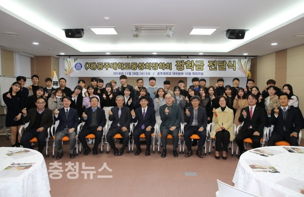 동창회장학회는 후배를 사랑하는 뜻깊은 마음으로 사범대학 국어교육과 심하련 학생을 비롯한 49명의 공주대 재학생들에게 각각 50만원씩 총 2천 5백만원의 장학금을 직접 전달하고 격려했다.