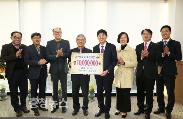한편, 이에 앞서 공주대학교 총동창회 37회 동문들은 대학발전과 인재양성에 많은 관심과 애교심으로 후배들이 사회에 진출해 창조적인 인재로 성공할 수 있도록 힘써 달라며 지난 28일(수) 대학 발전기금 1,000만원을 박달원 총장직무대리에게 전달했다.
