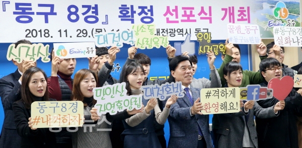 구는 29일 구청 10층 중회의실에서 간부 공무원과 기자단 40여 명이 모인 가운데 동구8경 선정에 따른 선포식을 개최했다.