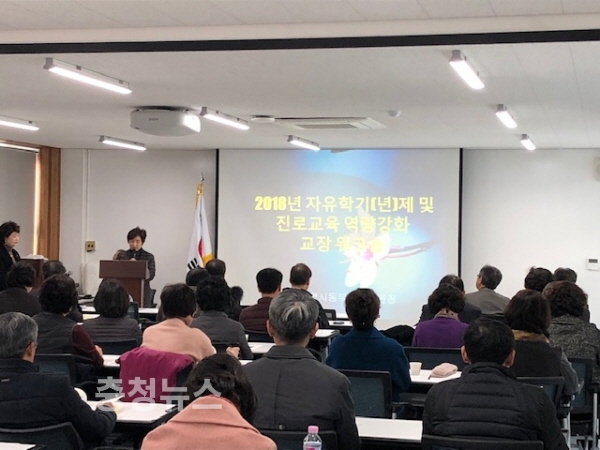대전동부교육지원청(교육장 전병두)은 30일, 충청북도진로교육원 및 충청북도국제교육원 다문화교육지원센터에서 관내 중학교 교장 40여명을 대상으로 자유학기(년)제 및 진로교육 역량 강화를 위한 ‘2018 교장 워크숍’을 실시했다.