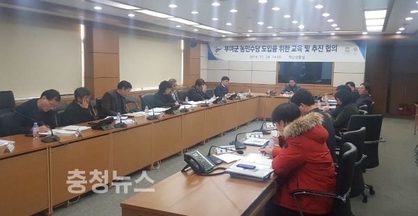 충남 부여군(군수 박정현)은 지난 28일 민선7기 핵심공약 중 하나인 농민수당 도입을 위한 추진협의회를 개최했다.