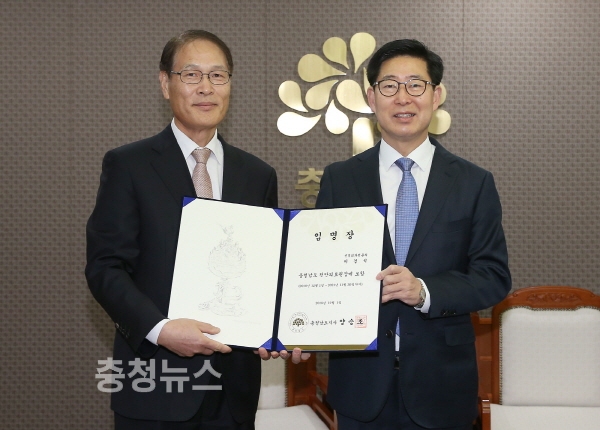 양승조 충남도지사는 30일 도청 접견실에서 이경석 신임 천안의료원장에게 임명장을 수여했다.