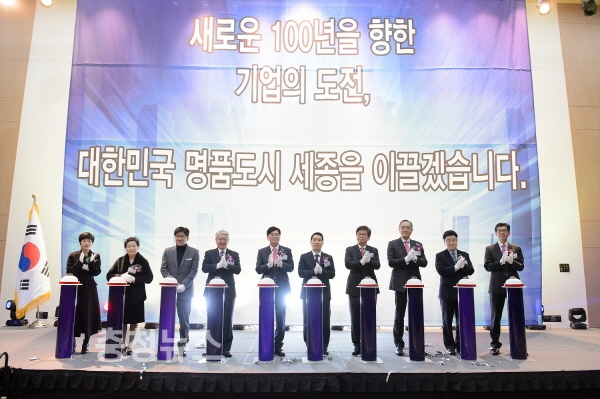 이어 기업인들이 세종경제 발전을 위해 역량을 모을 것을 다짐하는 비전선포식이 ‘새로운 100년을 향한 기업의 도전, 대한민국 명품도시 세종을 이끌겠습니다’를 주제로 열려 행사의 의미를 더했다.