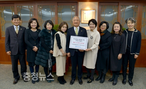 백석대학교(총장 장종현)ㆍ백석문화대학교 평생교육원 ‘백석 글로벌 여성 CEO 과정’ 4기 수료생들은 4일 오후 교내 진리관 대학혁신위원장실에서 대학발전기금 500만 원을 기탁했다.