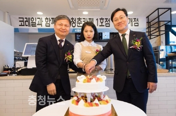청춘카페 1호점 '담다' 대전역에 개점 (가운데 오영식 코레일 사장)