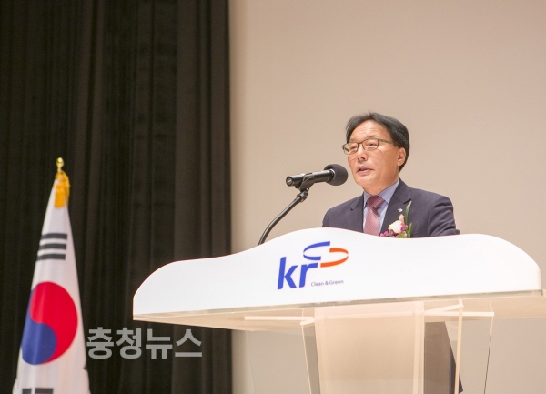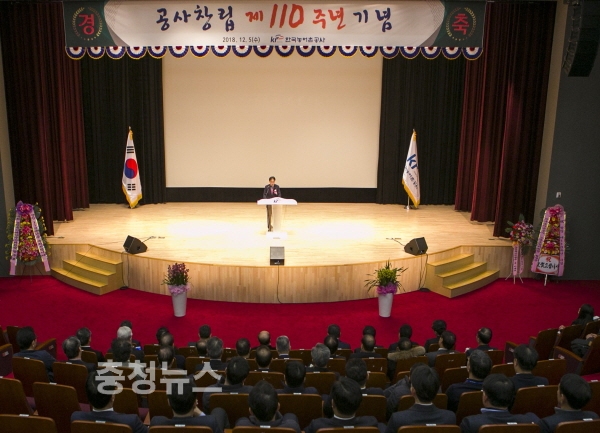 창립 110주년 기념식에서 기념사를 하는 이종옥 사장 직무대행