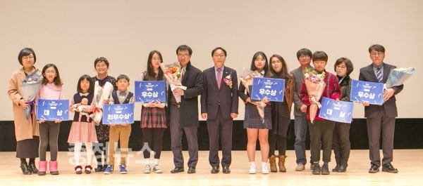 내고향 물 살리기 실천수기 공모전 시상식 단체사진(왼쪽에서 8번째 이종옥 사장 직무대행)