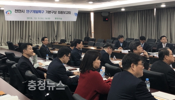 천안시는 지난 5일 시청 중회의실에서 천안 연구개발특구 기본구상 연구용역 최종보고회를 개최하고 스마트 제조혁신도시로 전환하기 위한 비전과 3대 추진방향 7대 과제를 제시했다.