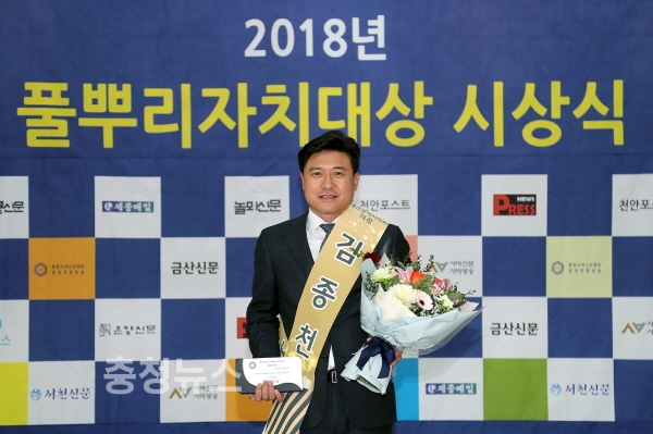 대전시의회 김종천 의장이 7일 세종시 수정웨딩&컨벤션홀에서 개최된 ‘2018 풀뿌리자치대상’시상식에서 의정발전 대상 수상의 영예를 안았다.