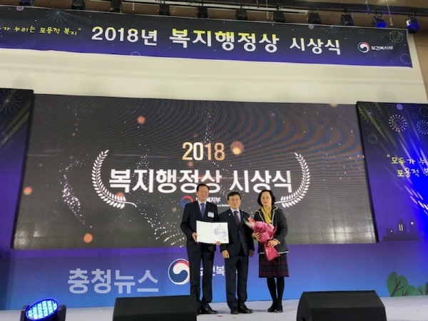 충남 보령시(시장 김동일)는 10일 세종컨벤션센터에서 열린 2018년 복지행정상 시상식에서‘사회보장급여 점검・관리 분야’에서 최우수 기관으로 선정돼 기관 표창과 함께 1000만 원의 포상금을 받았다.