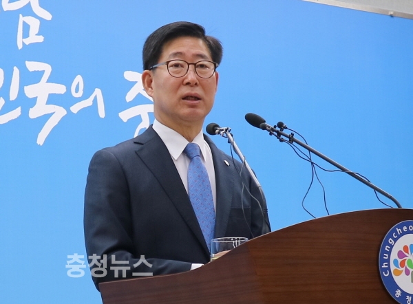 양승조 도지사가 10일 기자회견서 민선7기 공약실천계획을 발표하고 있다.