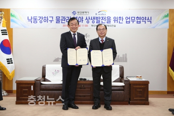 한국수자원공사(사장 이학수)와 부산시(시장 오거돈)는 10일 부산시청에서 ‘낙동강하구 물관리 분야 상생발전을 위한 상호협력’ 협약을 체결했다고 밝혔다.