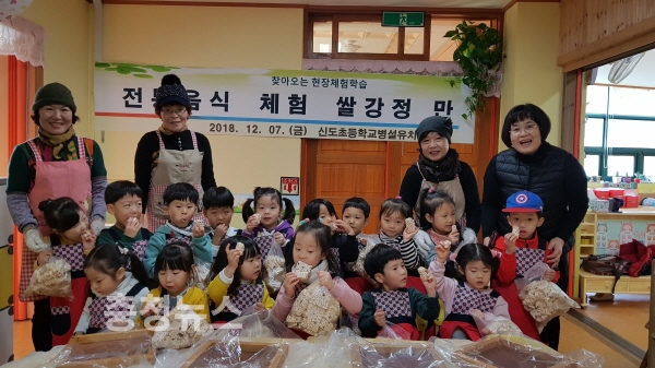 계룡시 쌈채피망정보화마을은 지난 7일 신도초등학교 병설유치원생 70여명이 참여한 가운데 컬러체험 White, 우리쌀 강정 만들기를 실시했다.