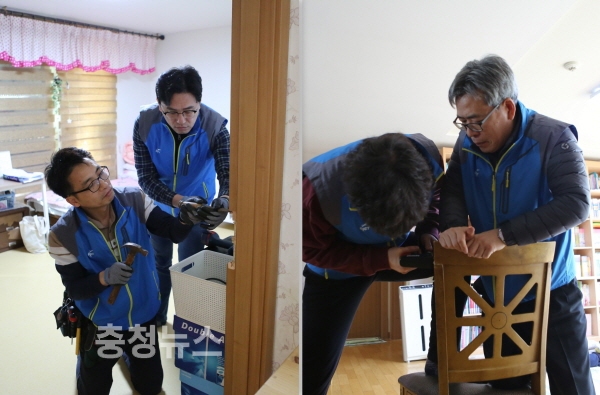 이날 기술봉사 회원들은 조명등 교체, 잠금장치 수선, 문틀 보수, 가구수선 등 그룹홈 생활공간에서 고장난 낡은 시설들을 수리했다.