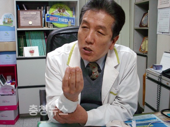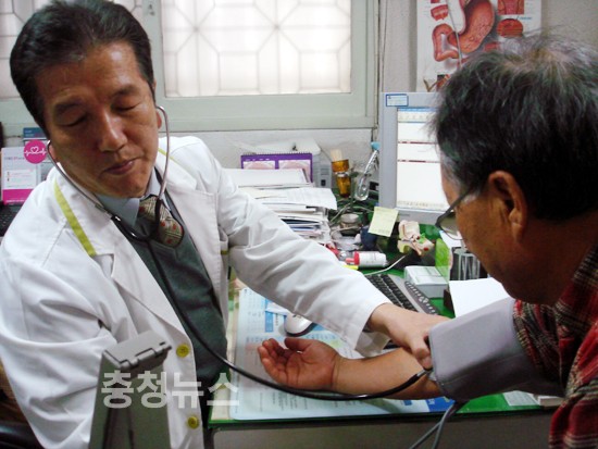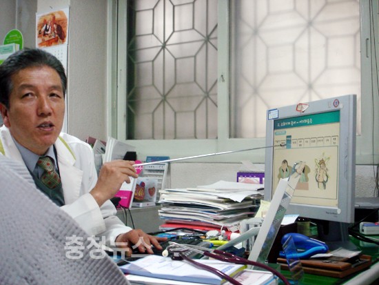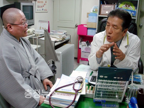 ▲ 박기서 원장에게 진료받는 조모씨(2009년도 대전광역시 중구 의사협회 회장)