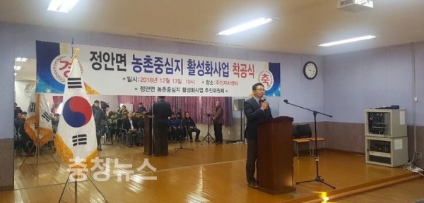 공주지사는 정안면 농촌중심지활성화사업을 통해 공주시 정안면 광정리 일원에 총사업비 54억을 들여 13일 토목건축공사 착공을 시작으로 주민자치센터 신축 및 리모델링, 강다리기공원 조성 등 기초생활기반을 확충하고 지역경관 개선 및 주민들의 지역역량을 강화하는 등 지역주민 복지증진에 이바지할 계획이다.