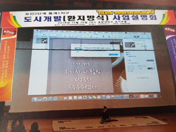 용계1지구 조합설립추진위원장 권태달 박사는 “공영개발이 무산된 우리 지역은 우리 스스로 개발해야 한다는 위기의식과 사명감을 갖고 용계동 일원의 사업화 방안을 모색하고 이를 지역민들에게 알리고자 이번 행사를 개최하게 됐다”고 말했다.