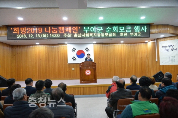 충남 부여군은 지난 13일 오후 여성문화회관에서 충남사회복지공동모금회 주최로 ‘희망2019 나눔캠페인 순회모금 행사’를 성황리에 마쳤다.