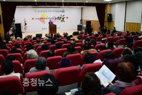 충남 홍성군 성인문해교육 학습자 6개 마을 40명이 지난 13일 홍성도서관에서 문해교육 수료식을 가졌다.