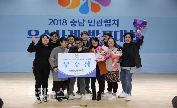 지난 5일 충남도서관 강당에서 민관협치 분야 전문가와 우수사례 발표자, 관계자 등 120명이 함께 참석한 가운데 2018년 충남민간협치 우수사례 발표대회를 개최한 결과 1차 서면심사를 통과한 10개의 사례 중 부여백마강 달밤시장이 우수상을 부여그림책 읽는 마을찻집이 장려상을 수상하는 영예를 안았다.