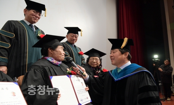 한 어르신은 “책 가방을 메고서 학교 가는 길에 간판을 읽다보니 속이 시원하다. 글을 읽다니 얼떨떨하다. 앞으로 딴 세상을 살거다”라며 늦깎이 학생의 배움의 뿌듯함과 고마움을, 개근상을 받은 98세 어르신은 “이 세상을 다 가진 것 같이 기쁘다”며 감사의 마음을 전해 가슴을 뭉클하게 했다.