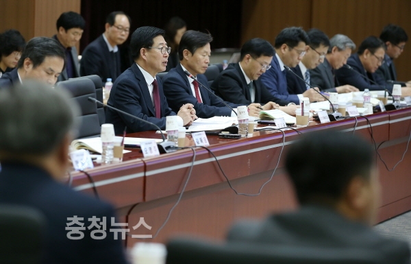 도는 20일 대회의실에서 양승조 지사와 오세현 아산시장, 김홍장 당진시장, 구본풍 서산부시장, 도내 경제 관련 기관·단체장, 전문가 등 50여명이 참석한 가운데 경제상황점검회의를 개최했다.